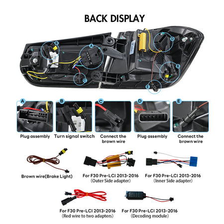 تعزيز جماليات الجزء الخلفي ووظائفه بي إم دبليو الفئة الثالثة F30 سيدان مع مصابيح خلفية LED من TT-ABCبفضل عدساتها المدخنة الأنيقة وتقنية LED المتقدمة وسهولة التركيب، تعد هذه المصابيح الخلفية الخيار الأمثل لترقية سيارتك.