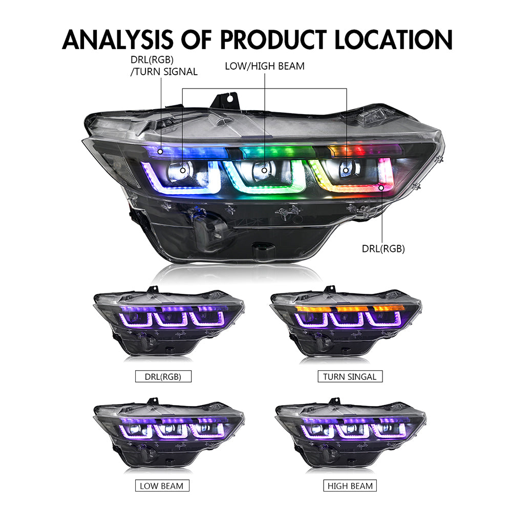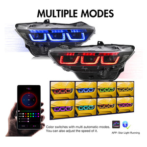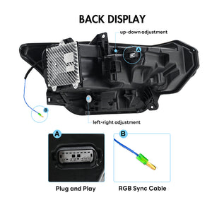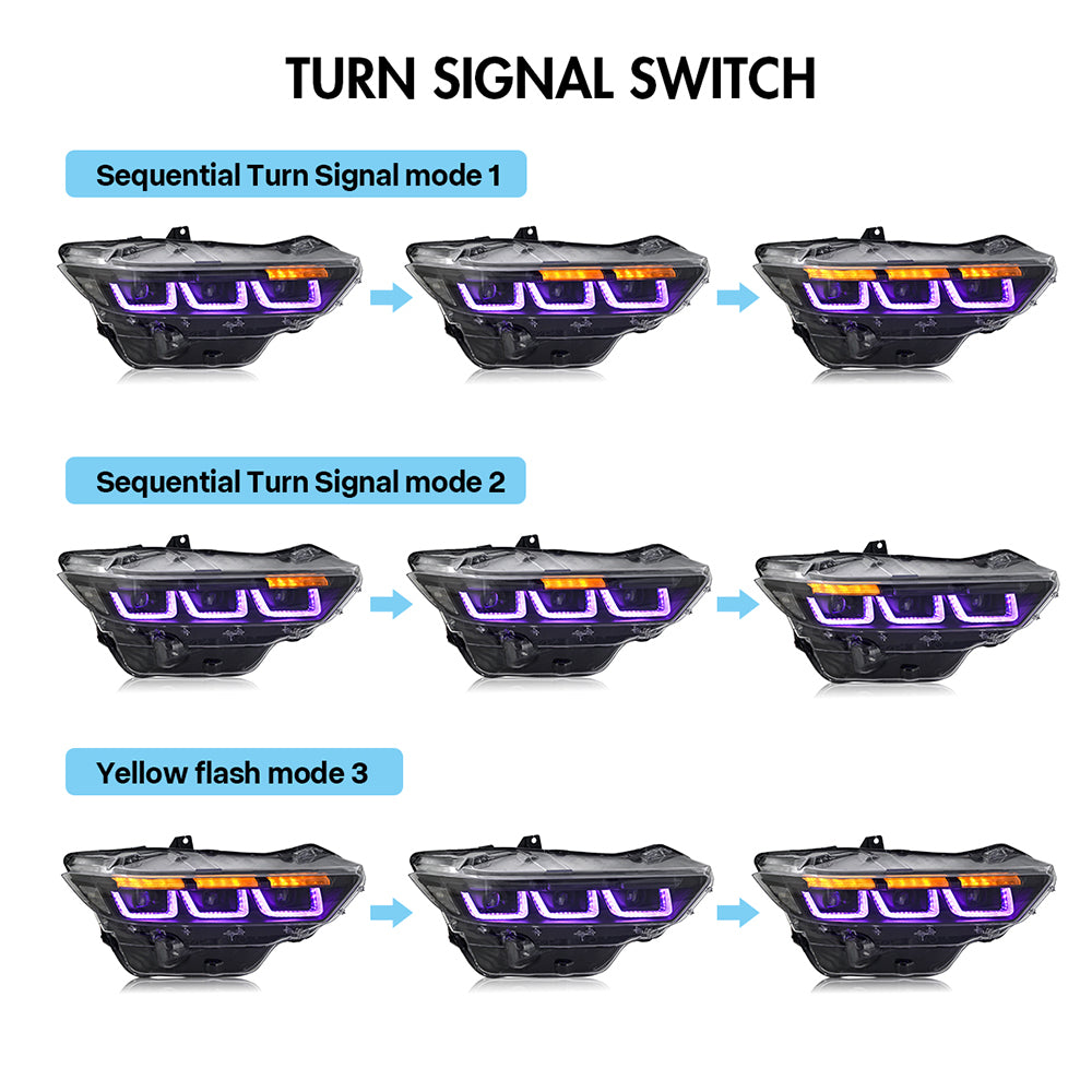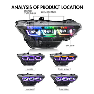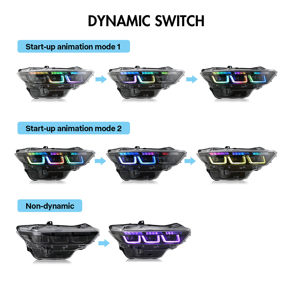 TT-ABC RGB Headlight For 2024-2025 Ford Mustang Projector Front Lamp Assembly with Triple Beam Len