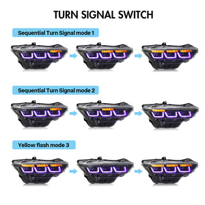 Full RGB Color Customization & Dynamic Effects: Take complete control of your Mustang's style. Using a RGB APP, choose from a variety of colors for the DRLs and create a unique presence. The lights feature an eye-catching start-up animation and amber sequential turn signals for a modern, high-tech look that enhances safety and aesthetics.