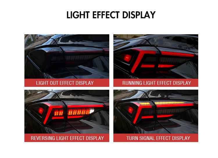 Luces traseras LED dinámicas: Las lentes ahumadas/rojas mejoran la apariencia de su Toyota Avalon con un efecto de iluminación dinámico y eleganteLas señales de giro secuenciales garantizan que su vehículo se destaque en la carretera.