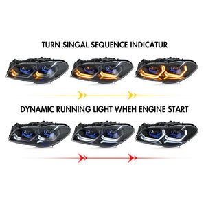 Phare LED TT-ABC pour BMW Série 5 F10 F18 (2011-2017) | Bloc optique avant avec feux de jour dynamiques et clignotants séquentiels | Installation facile (Plug-and-Play)