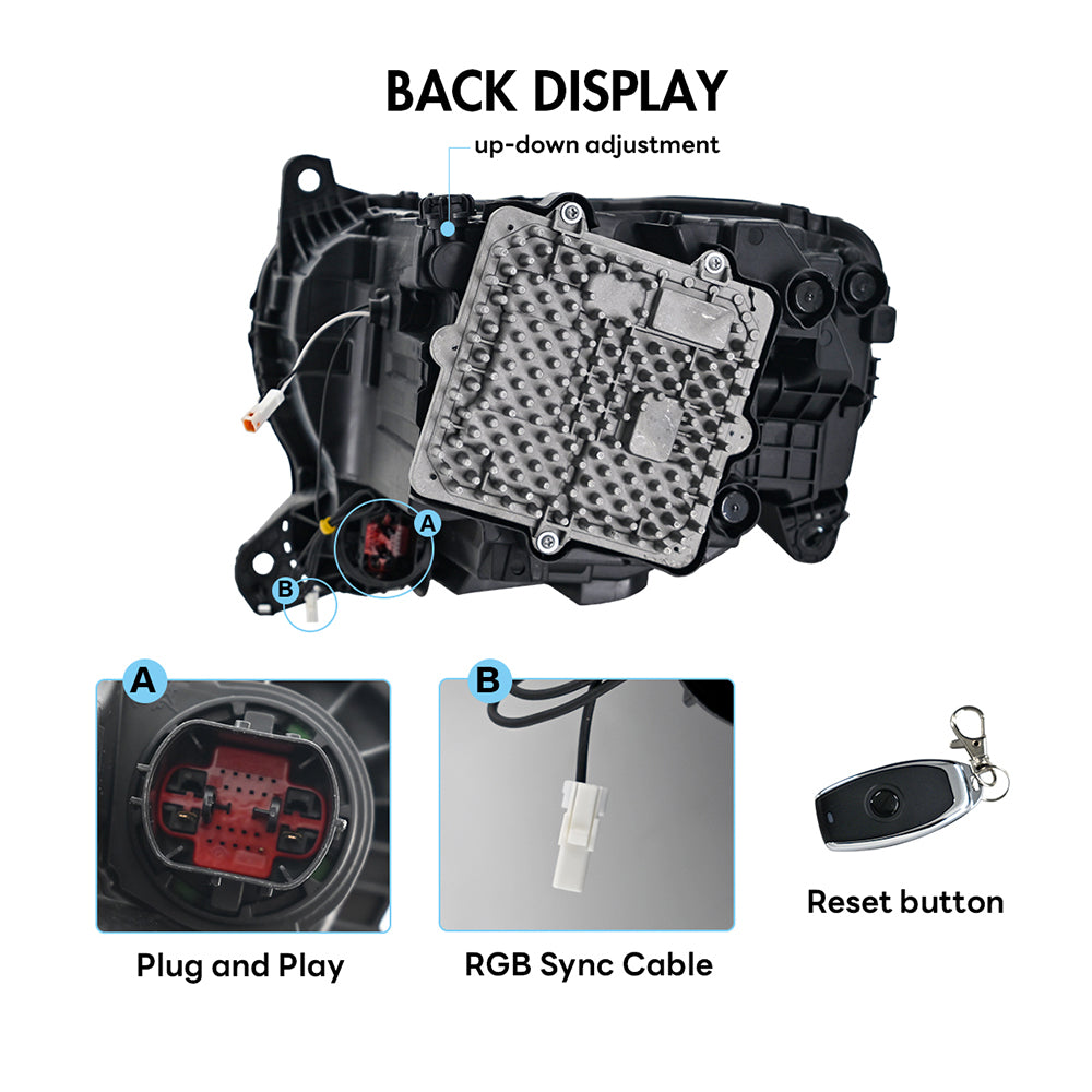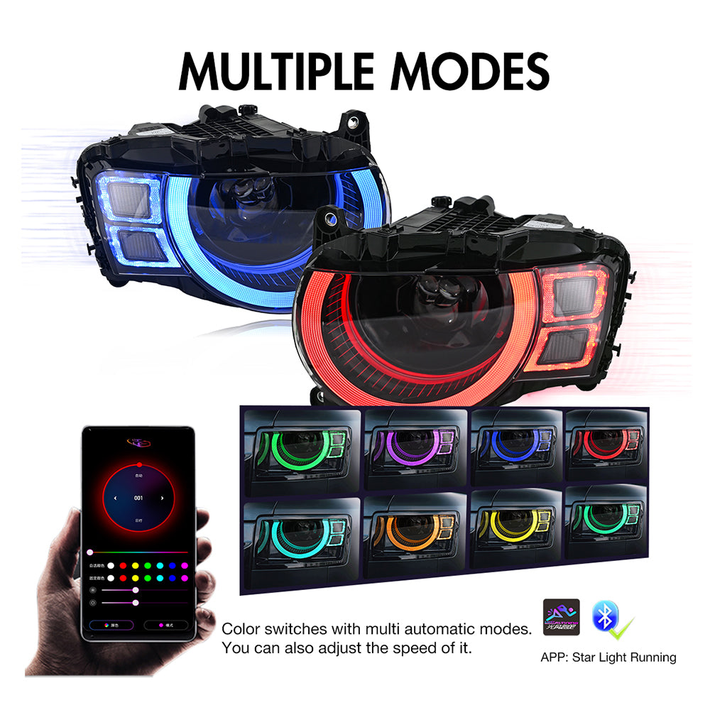 | Package Includes | 1 Pair (Left & Right) Complete RGB Headlight Assemblies, RGB Controller, Wiring Harness |