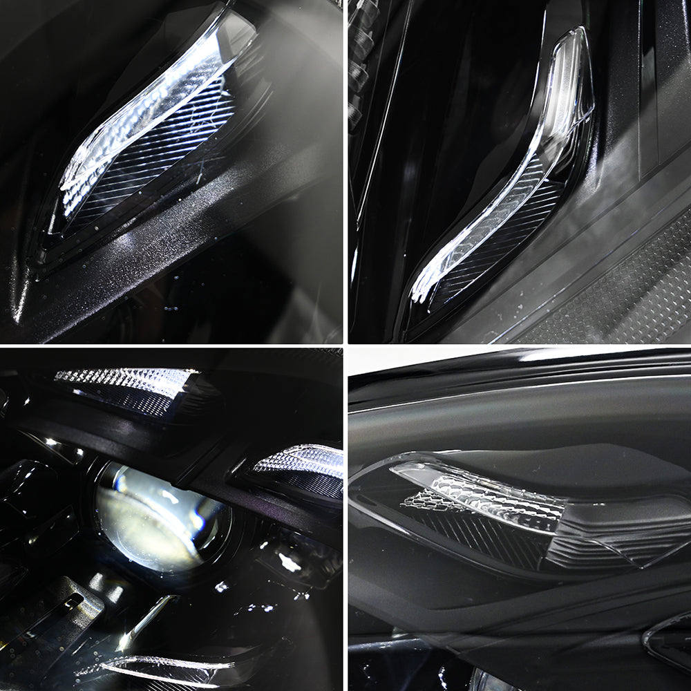 Il kit comprende i gruppi ottici anteriori Full LED Matrix lato conducente e lato passeggero, fornendo tutto il necessario per la trasformazione.