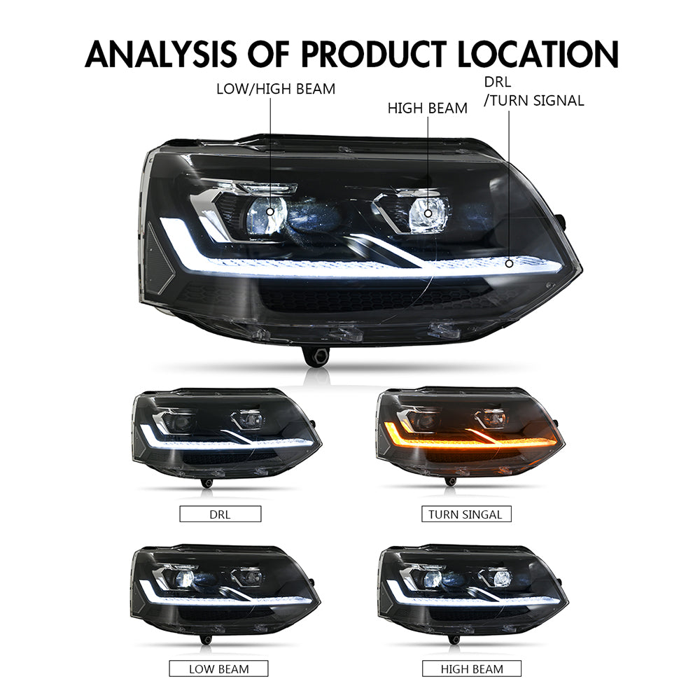 Fari anteriori a LED TT-ABC per Volkswagen Multivan T5.1 2013-2015 | Aggiornamento completo con luci diurne e segnali sequenziali