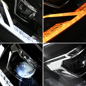 This is a complete upgrade to LED technology. The integrated LED projectors for low and high beams produce a brighter, whiter light (typically around 6000K) than standard halogen bulbs. This results in a longer, wider beam pattern that significantly improves your view of the road at night and in poor weather, making driving safer. The LED Daytime Running Lights (DRL) also increase your vehicle's visibility to other road users during daytime hours.