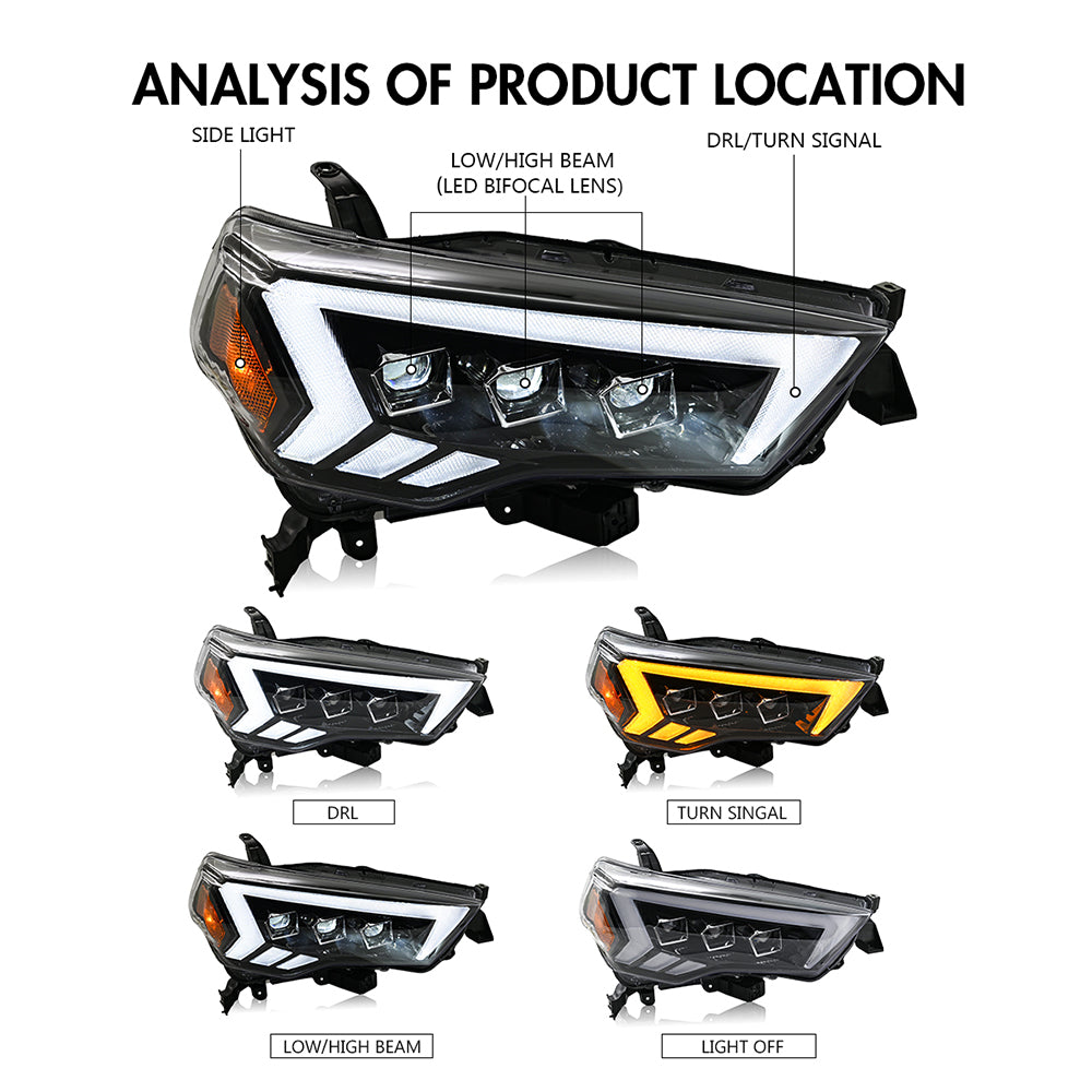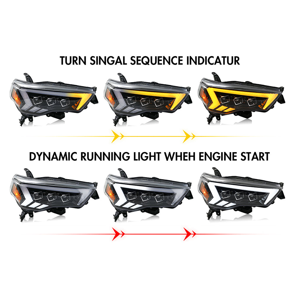 TT-ABC LED Headlights For 2014-2022 Toyota 4Runner | Premium Front Lamp Assembly with Sequential Turn Signals