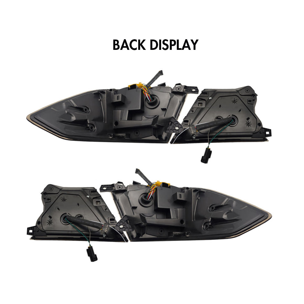 Exclusive Custom Style Stylish smoked len cover, amber turn signal with sequential switchback indicator LED tail lamp. Dynamic Animation Breathing DRL, brake light & white reverse light. Sold in pairs. Provide a dazzling look and outstanding illumination to the back of your car.