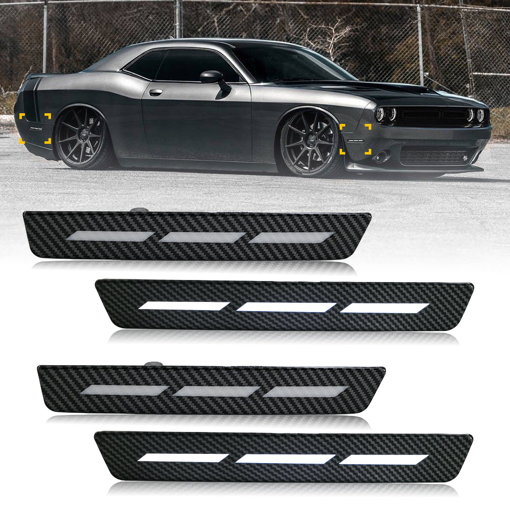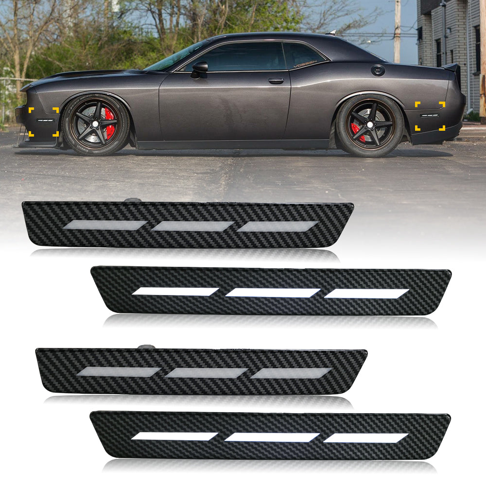 TT-ABC Dynamic LED Side Marker Lights for 2015-2023 Dodge Challenger | 4-Piece Set with Carbon Fiber & Sweeping Effect