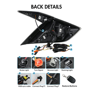 Despite the advanced RGB features, installation remains straightforward. Designed as a true OEM replacement, these assemblies use your vehicle's factory connectors and mounting points—simply remove your old tail lights, unplug them, and plug these new units in. No cutting, no splicing, no complicated wiring required. While the plug-and-play design makes installation accessible, professional installation is recommended for those without modification experience.