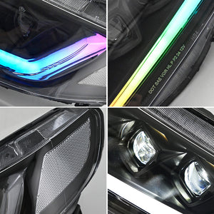 DRL: Full RGB Spectrum (Millions of Colors) High/Low Beam: 6500K Cold White LED Projectors Turn Signal: Amber Sequential LED |