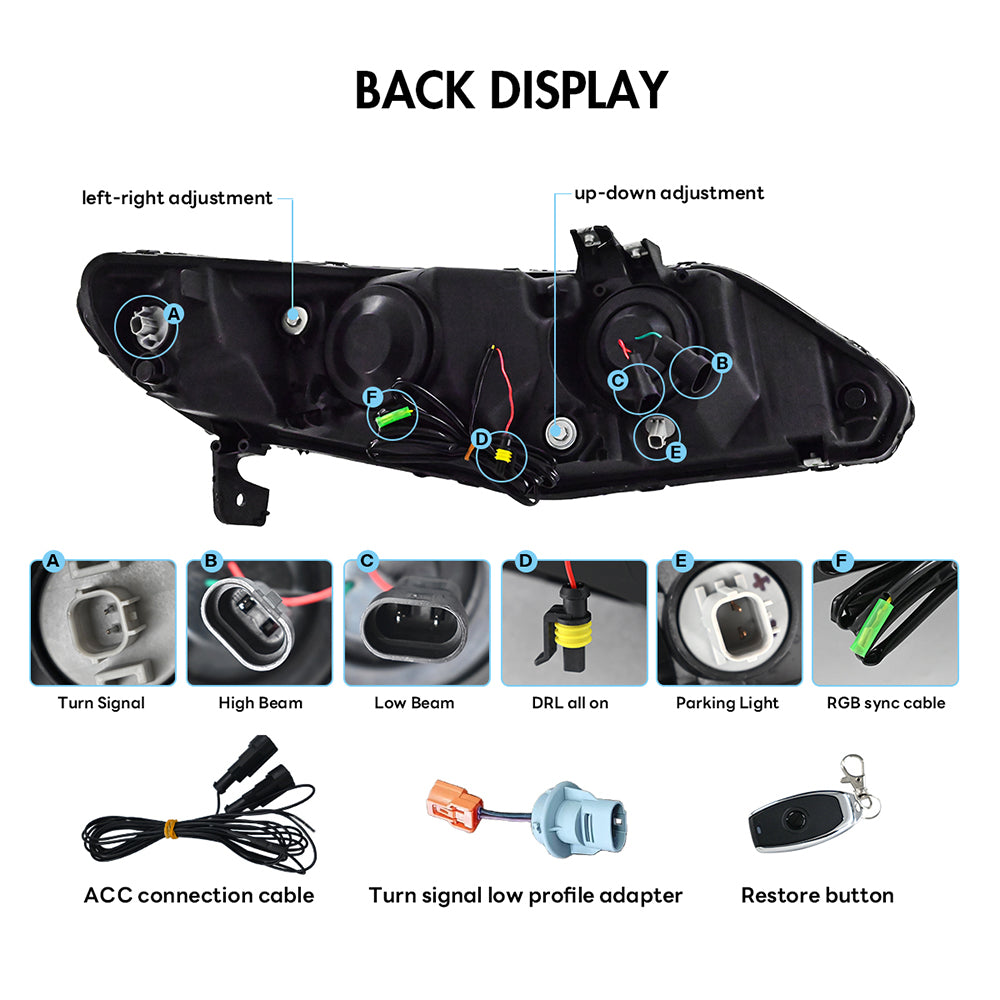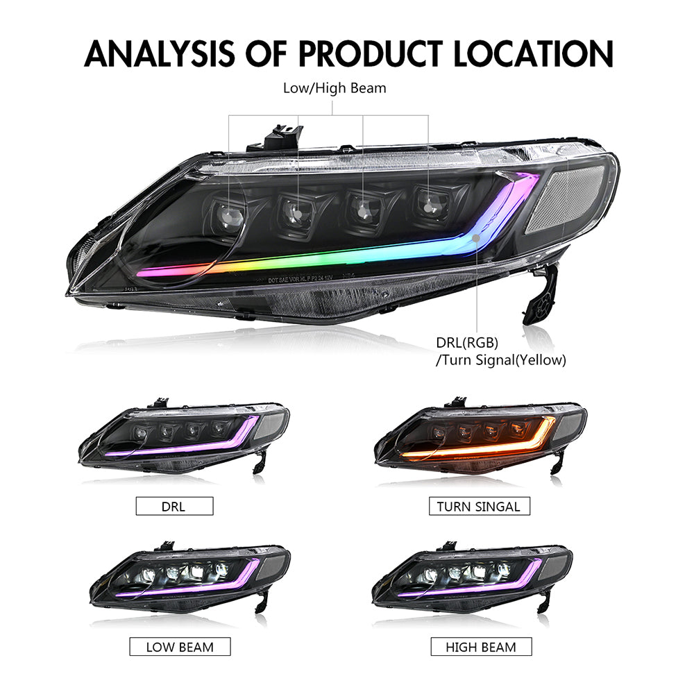 TT-ABC RGB Headlight for 2006-2011 Honda Civic 4 Door 8Th Gen Headlights Assembly