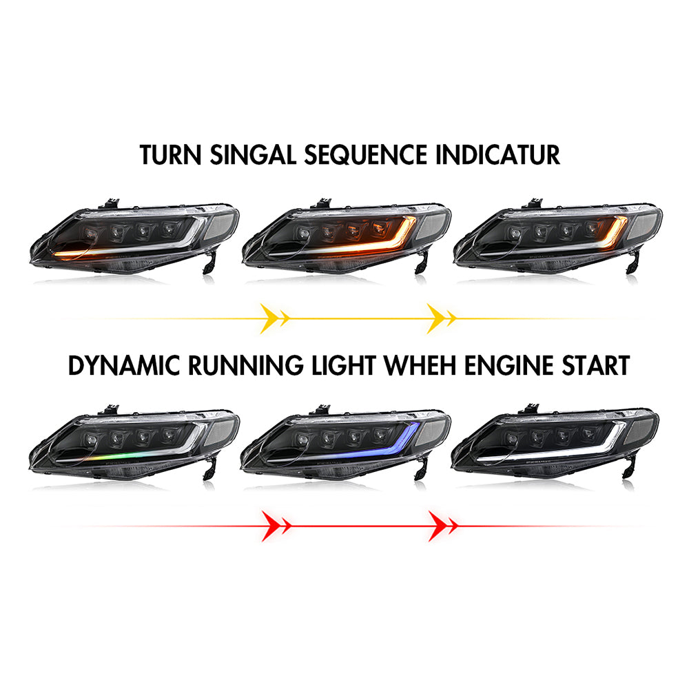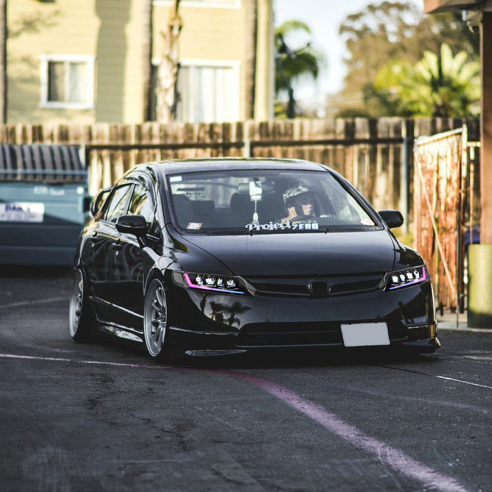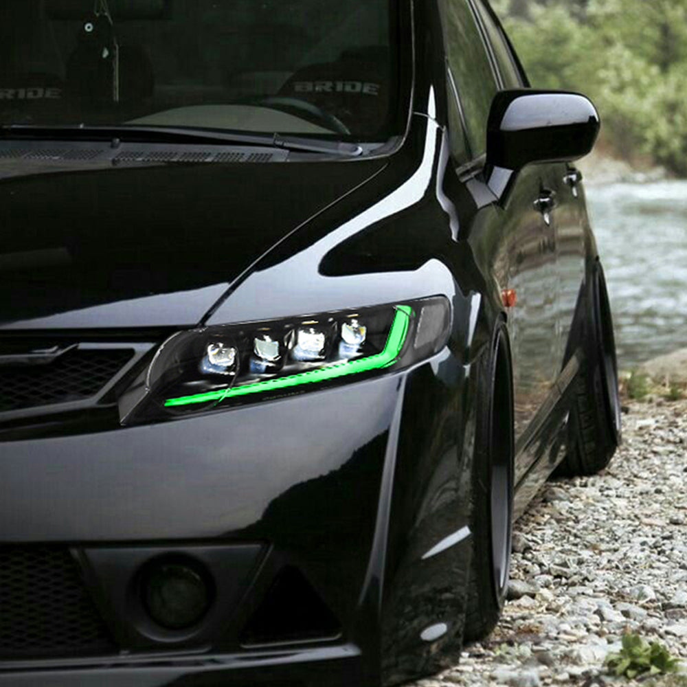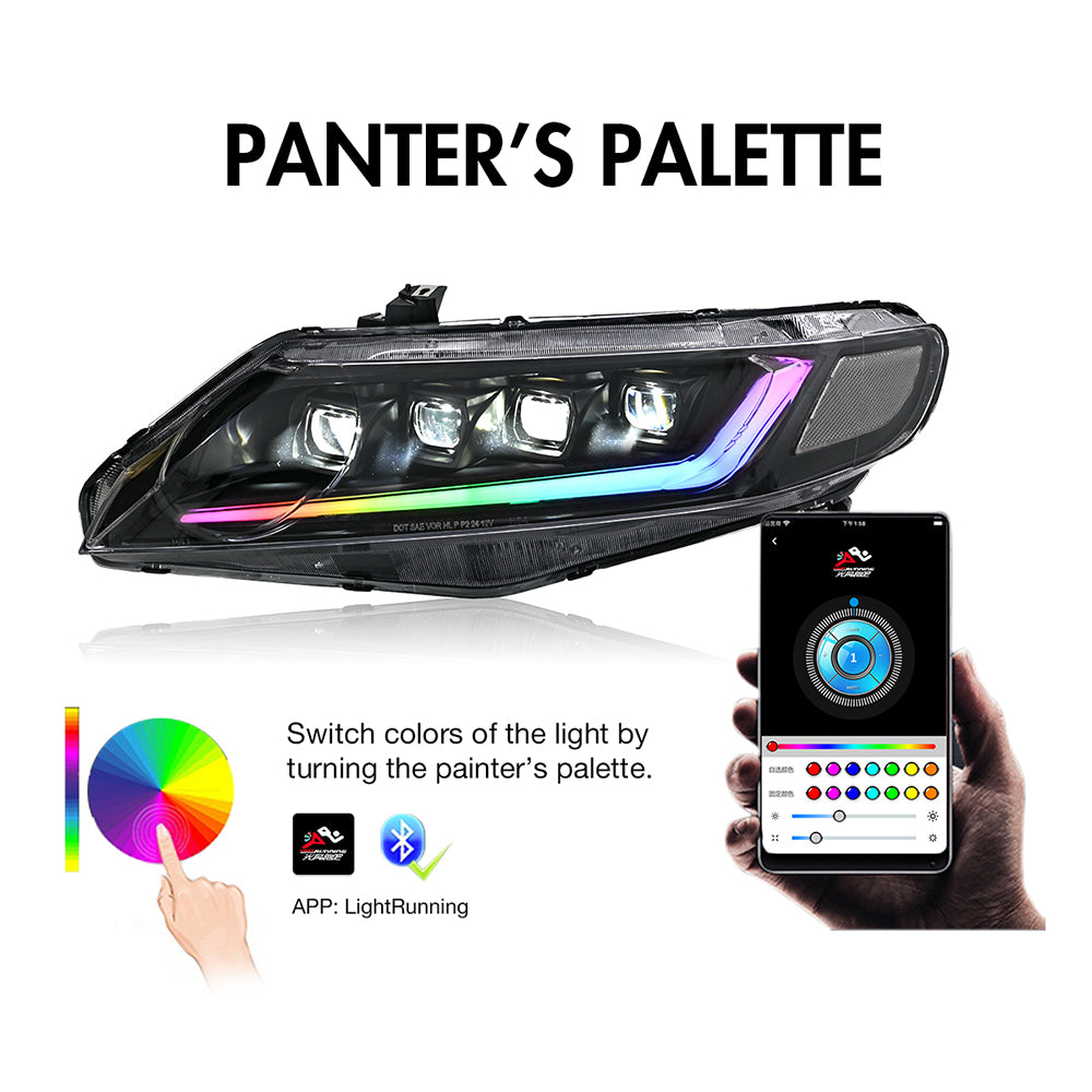 TT-ABC RGB LED Headlights for 2006-2011 Honda Civic 4-Door 8th Gen | Headlight Assembly with Customizable Colors & Dynamic Animation
