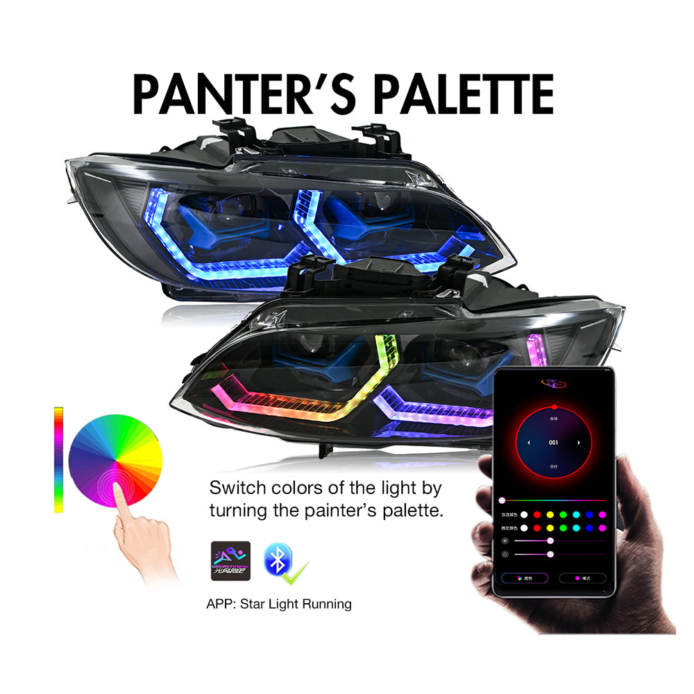 TT-ABC RGB LED Headlights for 2007-2013 BMW 3 Series (E92/E93) | Customizable Angel Eyes with HID Compatibility