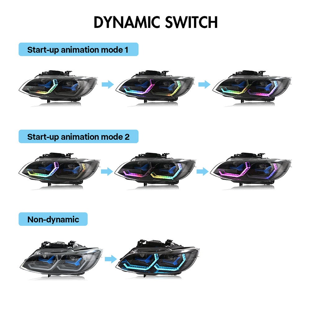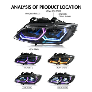 TT-ABC RGB Headlight for 2007-2013 BMW E92 E93 M3 3-Series 325i 328i 330i 335i HID Xenon Coupe LED Projector Front Headlight