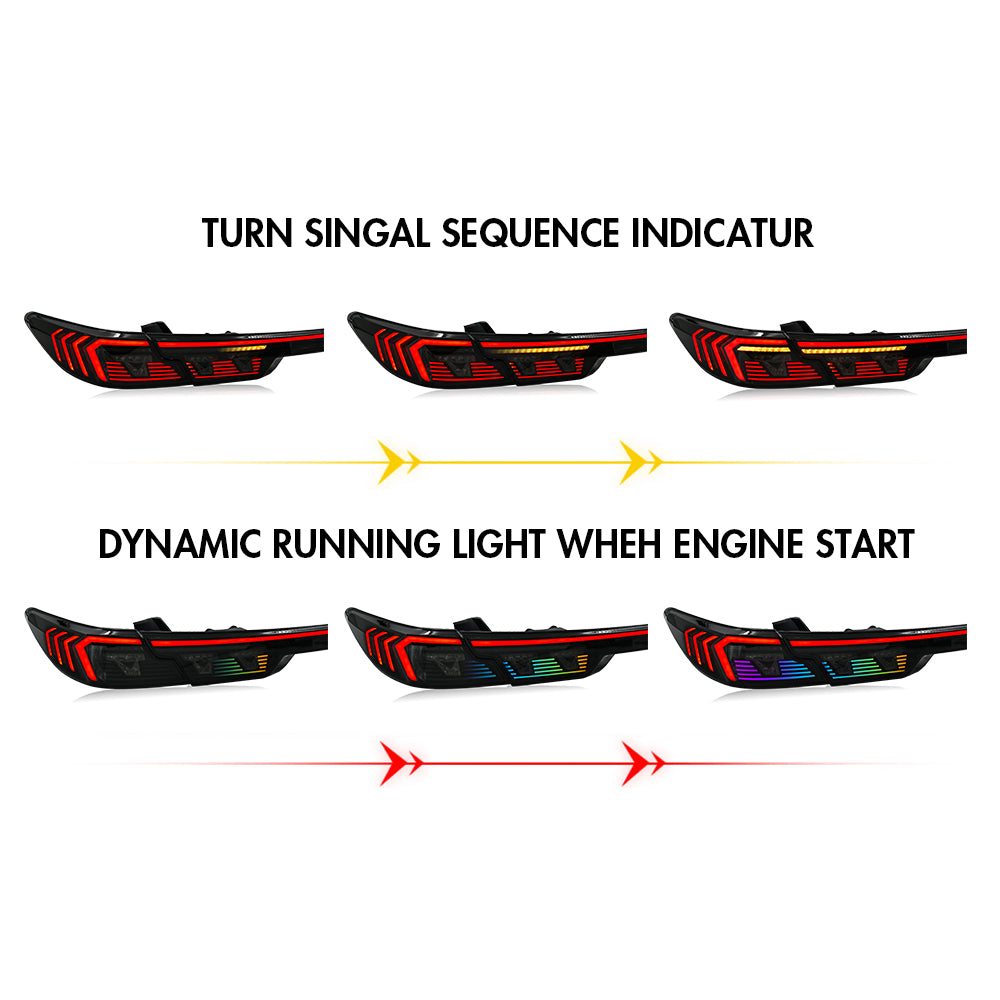 - Sleek Glossy Smoked Lens Design: Features a modern look with RGB DRL bar and LED sequential turn signals for enhanced visibility.