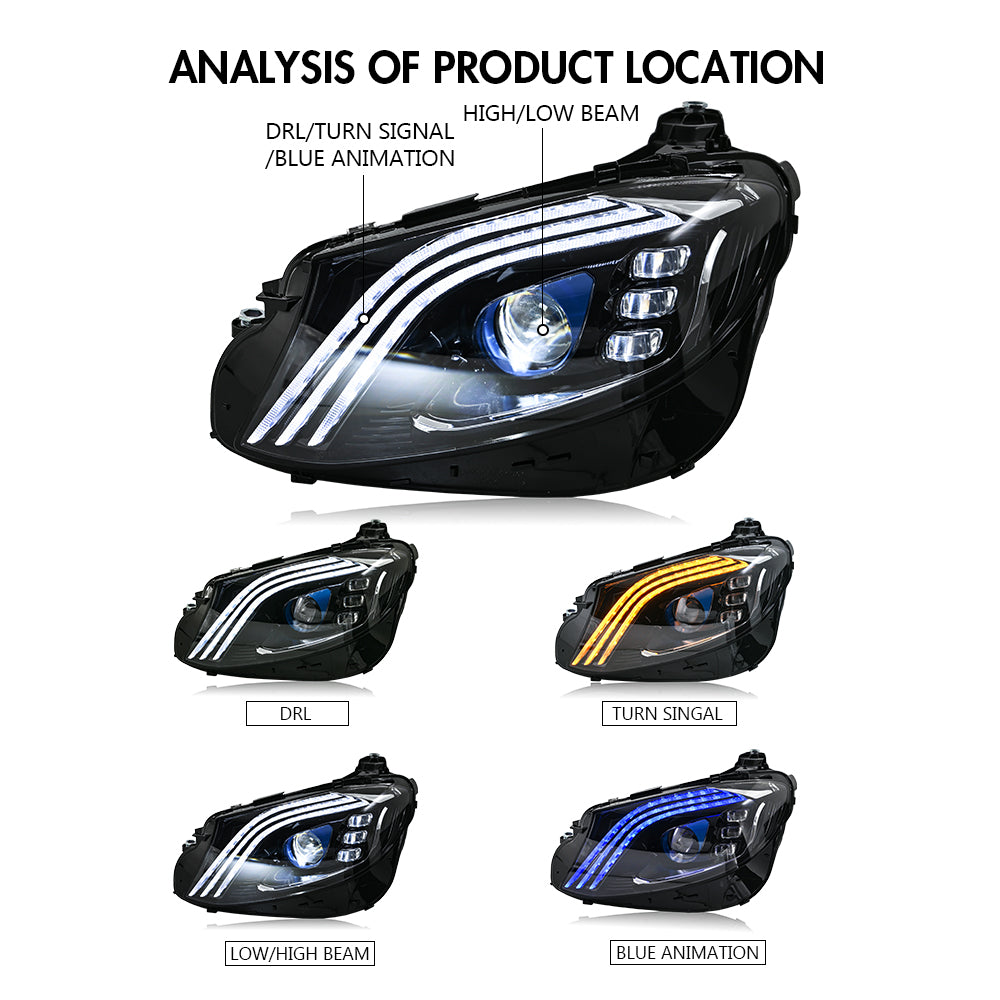 Upgrade your Mercedes-Benz E-Class with the TT-ABC LED Headlight Assembly, engineered for a perfect plug-and-play fit on 2016-2021 W213 models. These brand-new headlights deliver a modern, aggressive look with 6000K cold white light for superior visibility and a crisp, luxury appearance. They are a direct replacement for your factory units, designed to integrate seamlessly without modification.